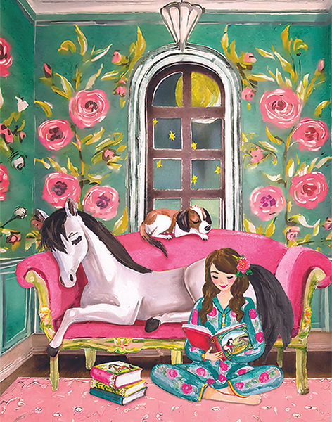 Penelope and her horse, Macaroni, live inside a sun-filled farmhouse layered with richly patterned wallpapers and fabrics. Their days are shaped by simple rituals — shared meals, painting, meadow walks, tending to barn animals, and bedtime stories.